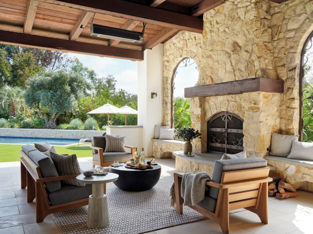 Create a seamless flow between indoors and outdoors by setting up a cozy living room under the sky. Add a sofa, rug, plants, and warm lighting to enjoy the same comfort outside, while soaking in the beauty of nature.