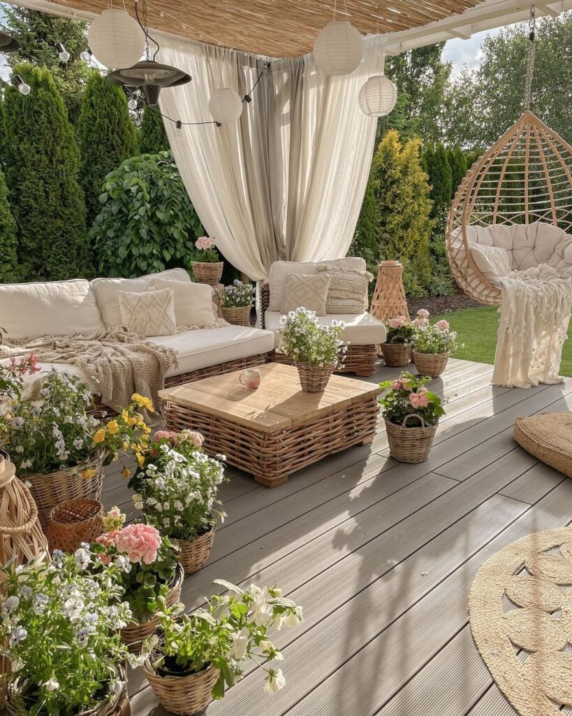 Bring texture and charm to your backyard with woven accents like rattan chairs, planters, or rugs. These durable pieces add a cozy, earthy feel while standing up to the elements, making your space stylish and inviting year-round.