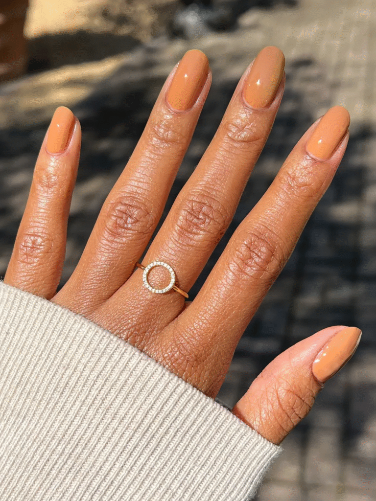 You can never go wrong with caramel brown for fall — it’s the ultimate cozy neutral! Think caramel lattes, crisp leaves, and warm sweaters all wrapped into one chic shade. Just layer on a few coats of caramel polish and finish with a glossy top coat for shine and strength. Simple, timeless, and oh-so-autumn!