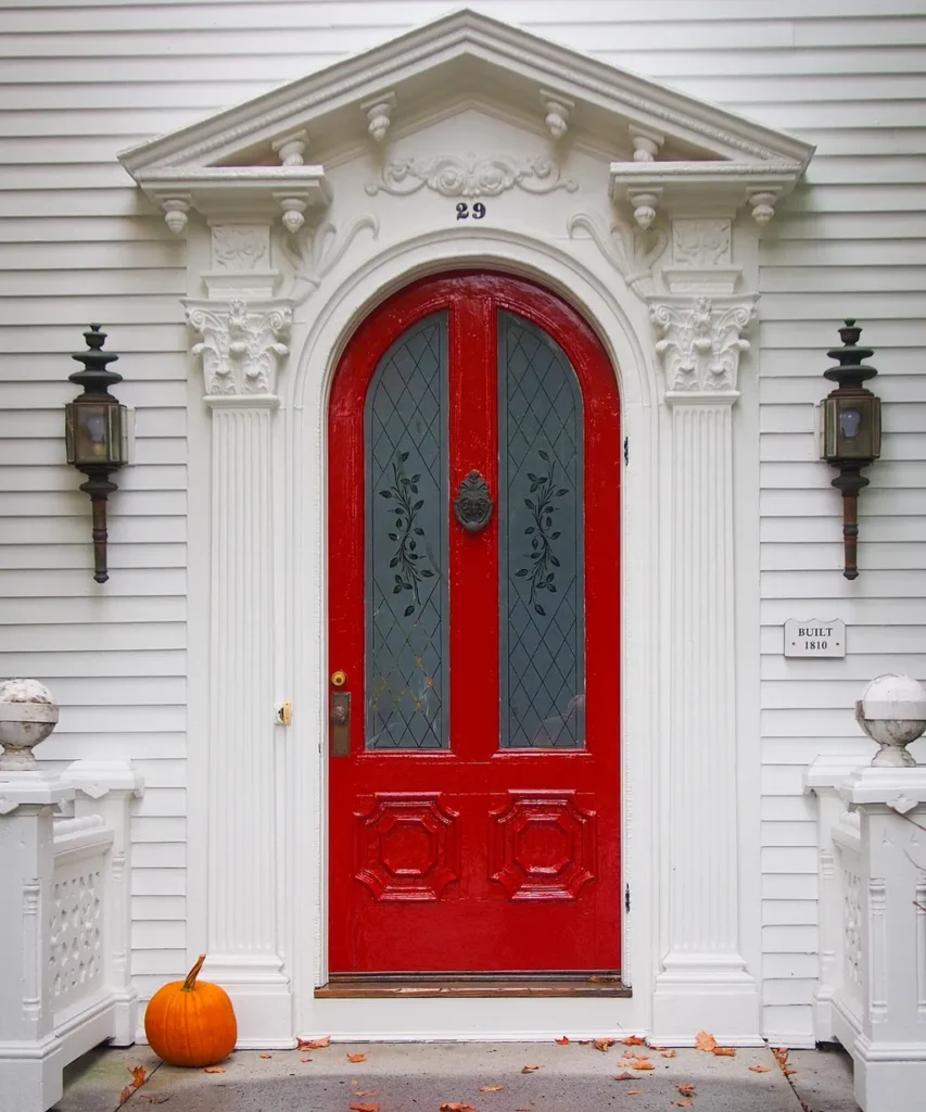 Skip the overload of pumpkins and give your porch a seasonal refresh with a freshly painted door. Warm reds, oranges, and yellows perfectly complement autumn’s natural palette. Add a single pumpkin for a simple, stylish fall-ready touch.