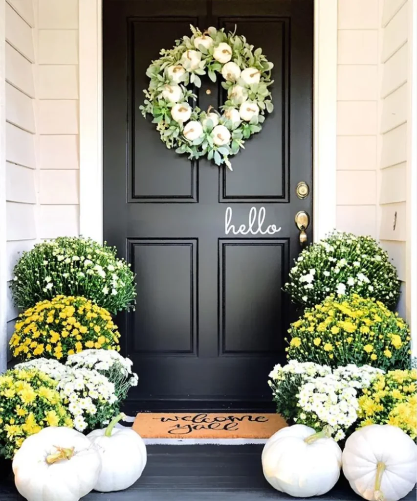 Who says flowers are just for summer? Bring life and color to your porch this season by decorating with fall-friendly blooms like vibrant chrysanthemums. Go classic with warm yellows and oranges, or try a softer palette with whites and light yellows for a fresh, elegant vibe. Take inspiration from Robbie at Home Hydrangea, whose stunning fall porch setup proves that flowers can make autumn décor even more beautiful.