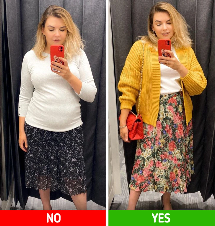 When layering, length matters. A short jacket over a longer skirt—especially in a contrasting color—can break up your outfit and make your body look wider. To create a smooth, balanced look, choose outerwear that’s the same length as your skirt or even longer. This elongates your silhouette and keeps proportions flattering. If you prefer a shorter jacket, pair it with high-waisted skirts or pants to maintain a clean line and highlight your shape.