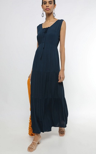 Step out in style with this stunning maxi-tiered scoop neck dress! Featuring a chic criss-cross tie-up detail and a solid monochrome look, it’s perfect for women who love effortless elegance. Made from soft cotton, it’s ideal for petite and apple-shaped body types. Great for casual parties or get-togethers with friends — pair it with comfy sandals and a touch of bling to shine with ease!