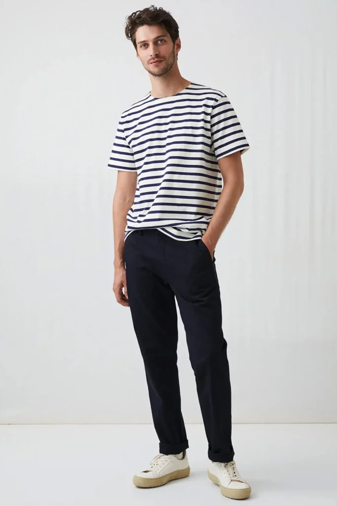 A true menswear classic, the Breton top is timeless, versatile, and effortlessly stylish. Its subtle stripes add interest without overpowering your look, making it perfect for summer. Pair it with cuffed navy chinos and finish with leather sneakers for casual days or Derby shoes for a smarter occasion.