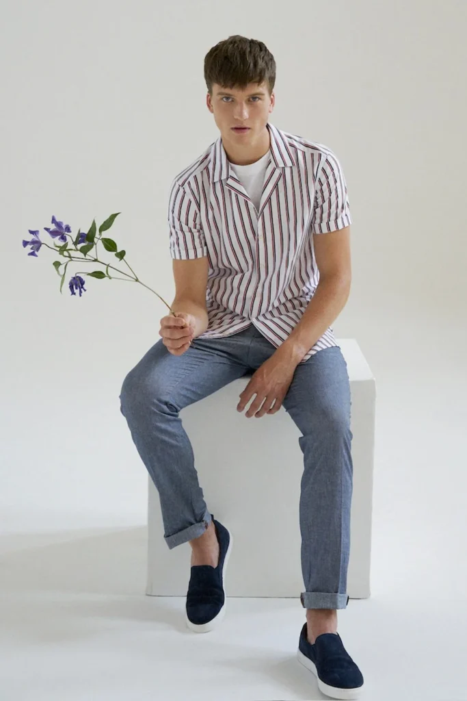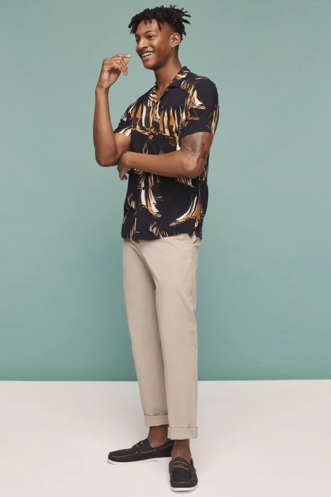 Summer is the perfect time to embrace prints and patterns. A bold printed shirt instantly adds personality to your outfit, so let it take center stage. Balance the look with simple chinos in neutral tones, cuffed slightly for a relaxed, warm-weather finish.